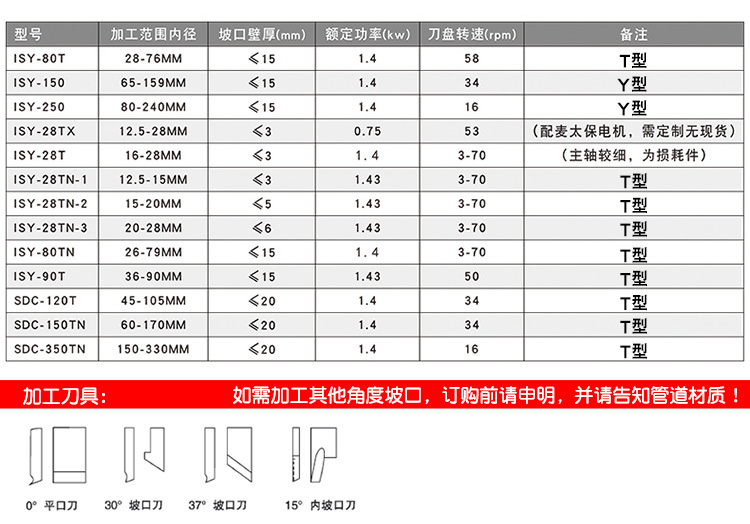 5、加工范圍:內(nèi)徑從12.5mm到330mm的不同規(guī)格管道,均可選型;